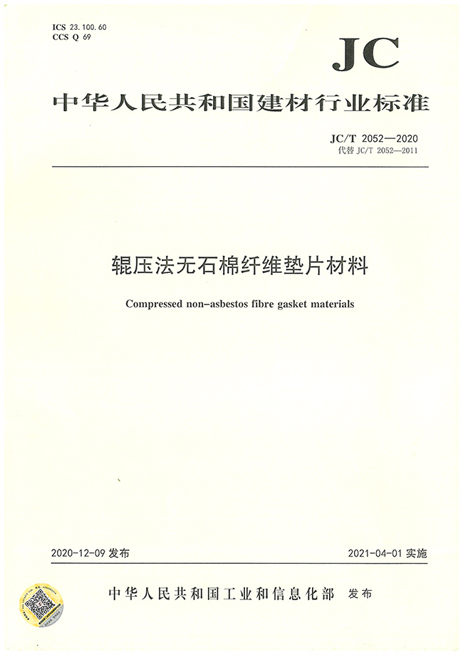JC/T 2052-2020《輥壓法無(wú)石棉纖維墊片材料》標準的第三起草單位。